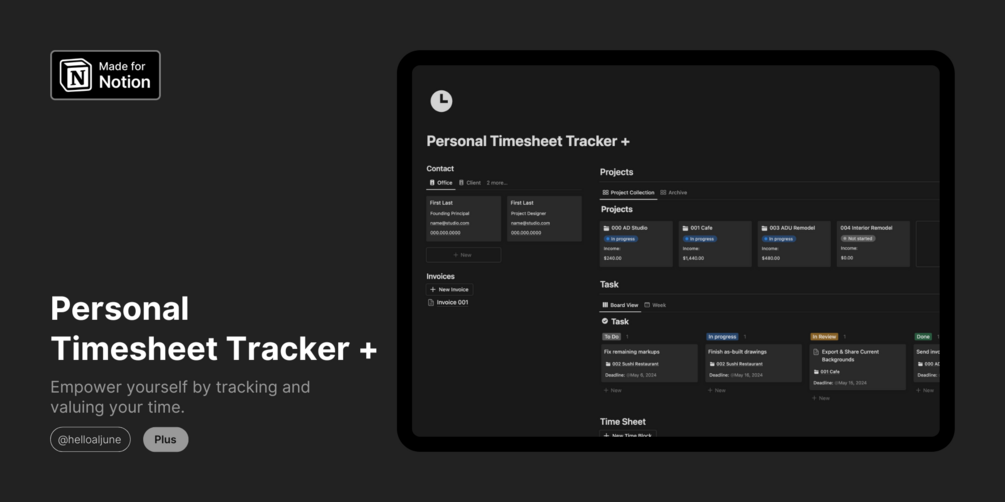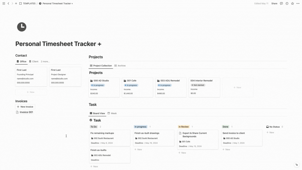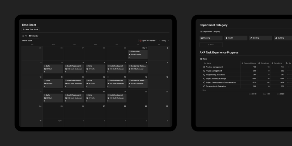 Work in an architecture, engineering, or interior design firm? This template aims to assist you in effectively tracking your timesheet, facilitating accurate invoicing for your work. Plus version — It enables you to personally monitor your AXP record hours before submitting them to the NCARB website. Consider it your personal career planner, keeping you on track with your professional hours.